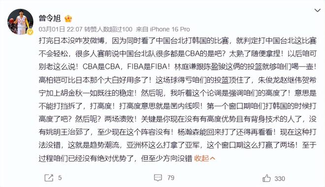 北京時間3月1日,中國男籃100-93擊敗中國臺北男籃拿到二連勝,這世預賽第二個窗口期全勝為男籃晉級第二階段奠定瞭基礎,七月份再贏一場就可以鎖定前三的席位。全新的陣容讓男籃收獲頗豐,我認為一大收獲就是賀希寧。