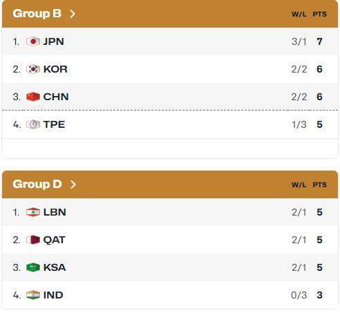 目前B組前三名為日本、韓國、中國,第四名是中國臺北,D組前三名為黎巴嫩、卡塔爾、沙特阿拉伯,第四名是印度。考慮到中國臺北和印度很可能無法向上爬升,中國男籃將從第四窗口開始面對黎巴嫩、卡塔爾、沙特三個對手,屆時中東地區的局勢也將影響中國男籃的賽程安排。