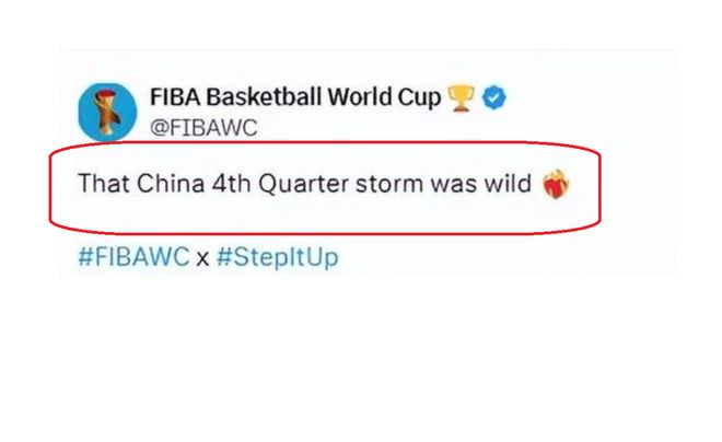 FIBA發文點贊中國男籃,表示中國男籃在關鍵的第四節比賽,打出瞭風暴,打得太猛瞭!