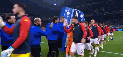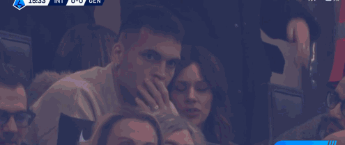 第16分鐘,鏡頭給到場邊瞭,勞塔羅看臺觀戰